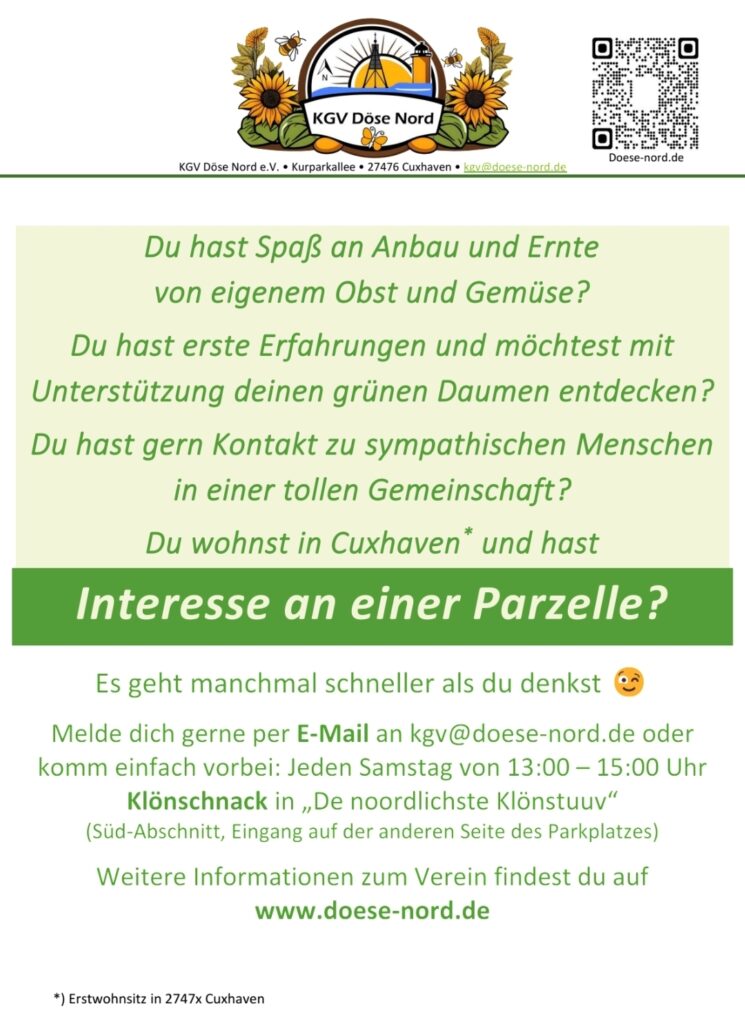 Aktuell haben wir leider keine Parzelle frei, das kann sich aber im Winterhalbjahr schnell ändern.